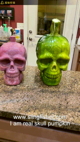 put the pumpkin in the mold and connect the 2 front side skull mold with screws . the pumpkin will slowly grow bigger and finally fill in the mold ... take the mold off ,you will get double skull face pumpkin as below :